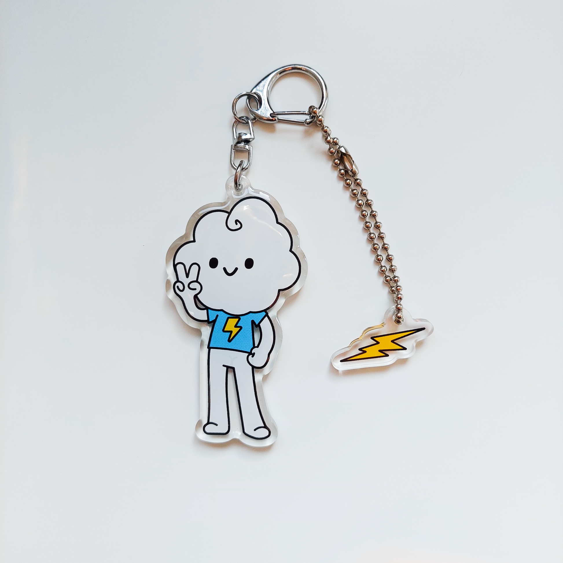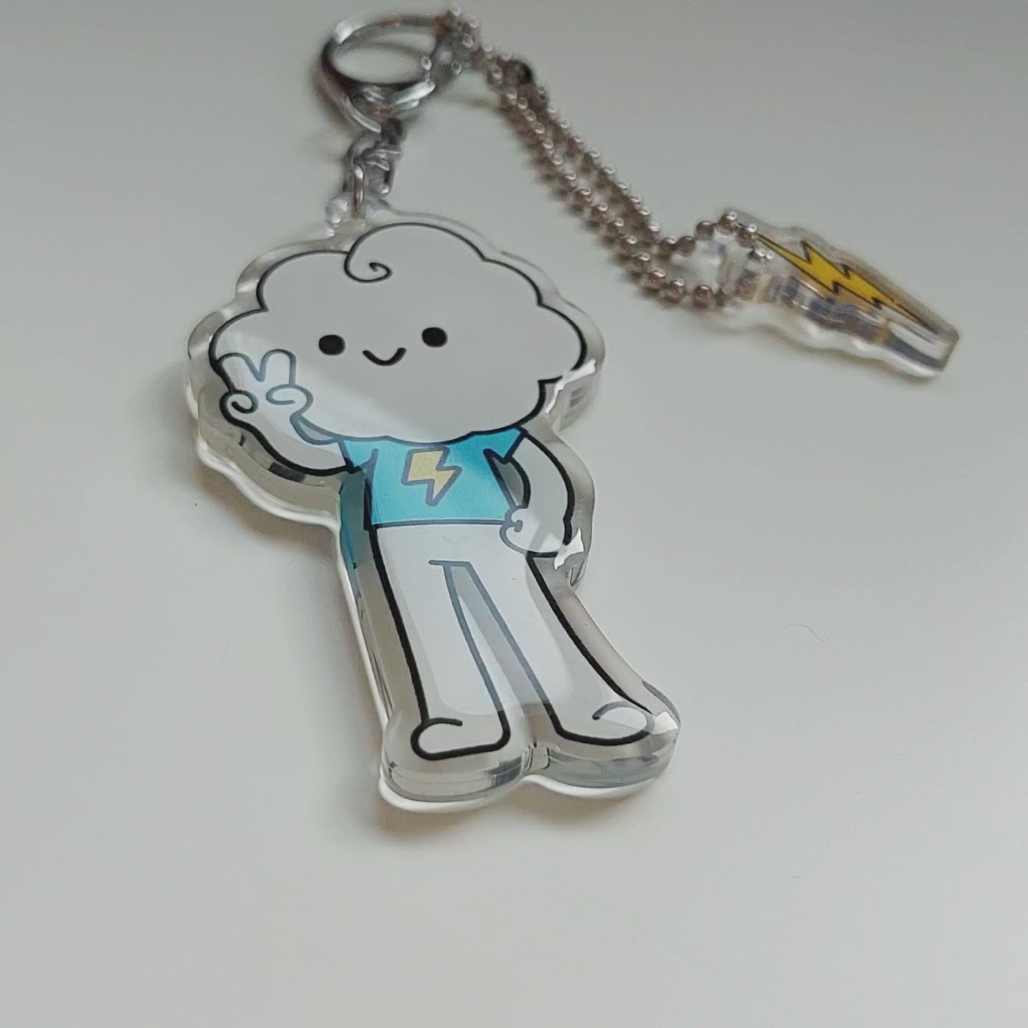 Cloud’s all about the good vibes—cool, calm, and always cruisin’. This double-sided epoxy-coated keychain shows Cloud flashing a peace sign up front, and his cute little bum on the back. Comes with a zappy lightning charm to match his energy. Perfect for bags, keys, or wherever you need a vibe boost.