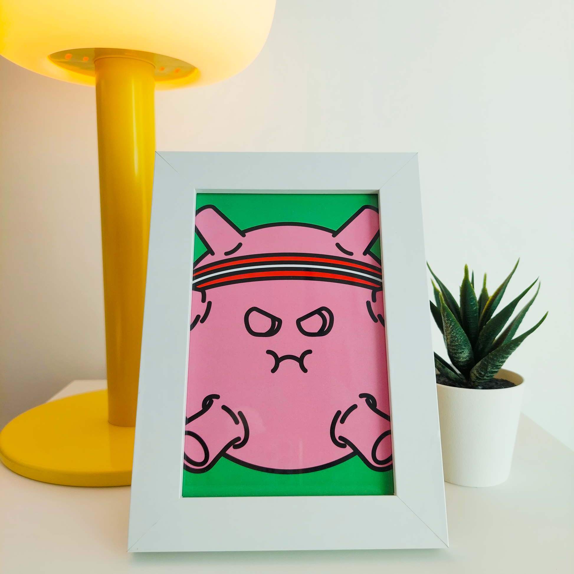 CHEW’s small, sweet, and totally unbothered — until he’s not. When pushed, he puffs up like a bubble and fires sticky gumballs at anyone in his way. This 7x5 framed print captures him mid-battle mode: bold, bubble-blown, and ready to snap.